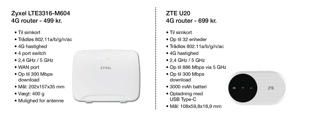 Hos RA MOBIL kan du købe en router, der kører 4G hastighed. Hastigheden afhænger af din geografiske placering.